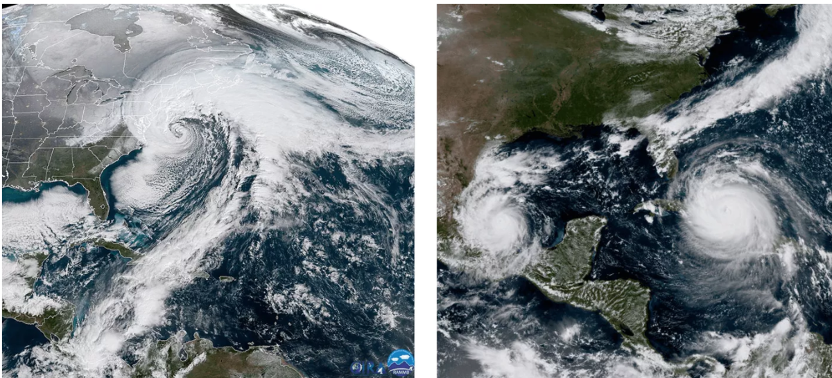 ノーイースター(北東からの暴風雨)もハリケーンも、どちらも大西洋上で発生します。